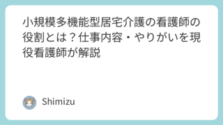 在宅介護 小規模多機能型居宅介護の看護師の役割とは?仕事内容・やりがいを現役看護師が解説
