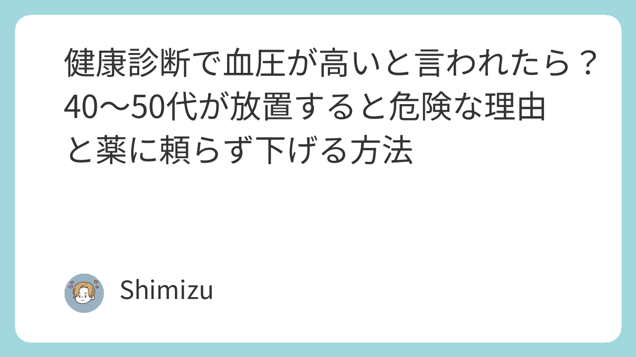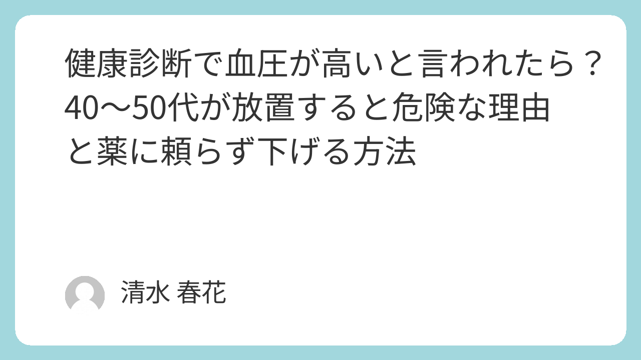 この記事では、健康診断で血圧が高いと言われた40〜50代の方に向けて、高血圧の特徴をわかりやすく解説します。